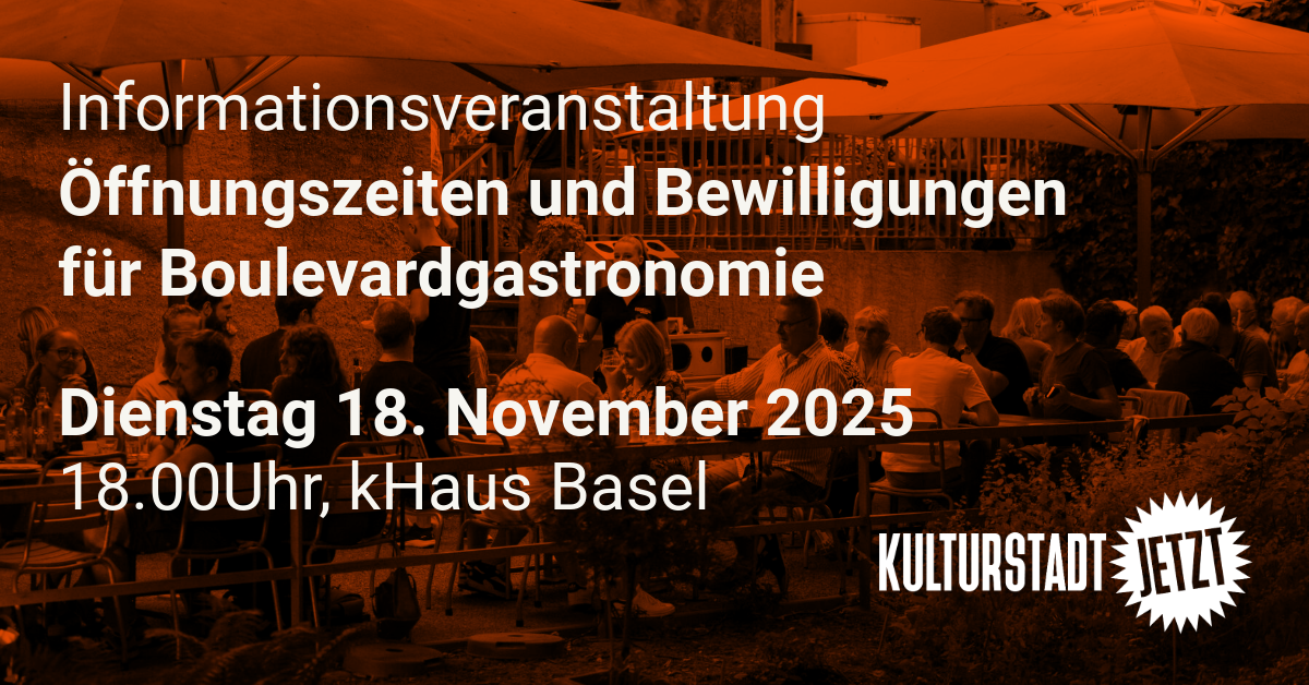 Vertreter*innen der zuständigen Amtsstellen erklären die Grundlagen und Voraussetzungen rund um Öffnungszeiten der Boulevardgastronomie in Basel und geben Einblick in die Prozesse, um die notwendigen Bewilligungen zu beantragen. Ausserdem besteht die Möglichkeit, allgemeine Fragen zu diesen Themen zu stellen.